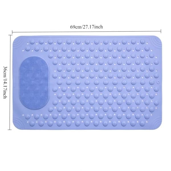 Measuring 69 x 36 cm, this mat is large enough to cover a generous portion of your tub or shower floor while still being easy to lift and rinse. The oval design makes it a versatile fit for different bathroom layouts, whether placed inside the bathtub, on a shower floor, or near the sink area.