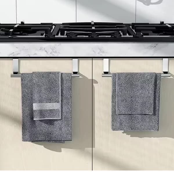Unlike bulky free-standing towel racks, the over cupboard towel rail doesn’t take up valuable floor or counter space. It sits neatly over your cabinet, keeping your towels close at hand but out of the way. The sleek stainless steel finish also blends seamlessly with most kitchen or bathroom décor, making it as stylish as it is practical.